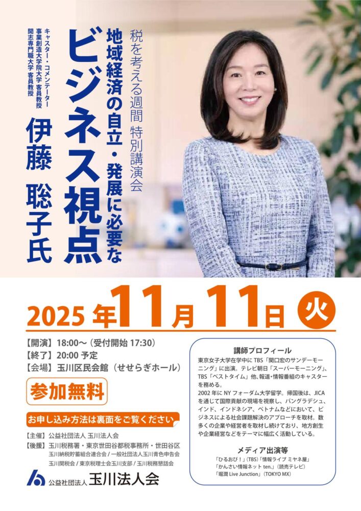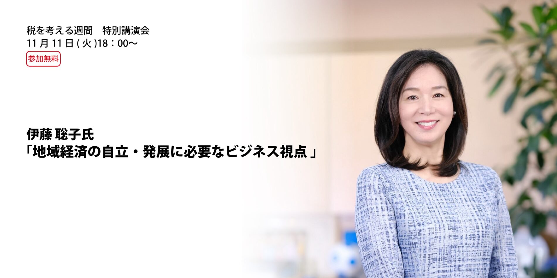 【参加無料】11月11日 税を考える週間講演会「地域経済の自立・発展に必要なビジネス視点 伊藤聡子氏」