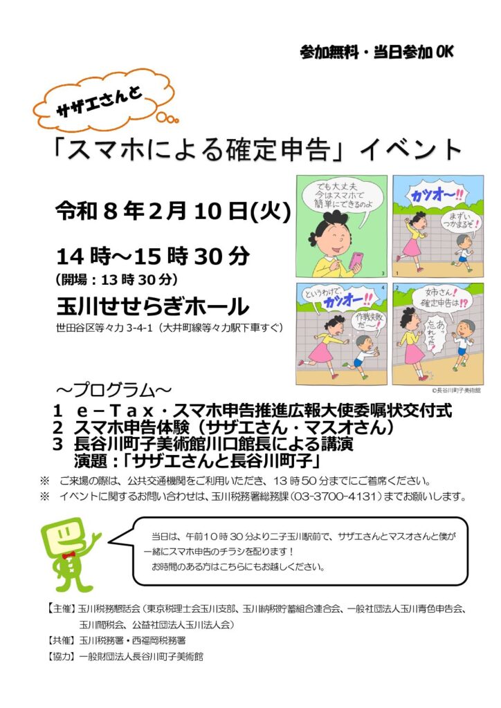 2月10日(火)サザエさんと「スマホによる確定申告」イベント開催!