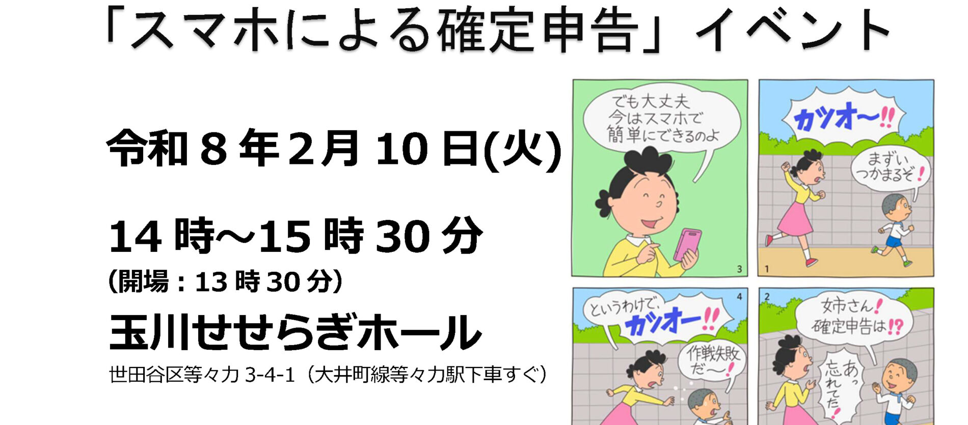 玉川税務署では、デジタルを活用した各種手続きの利用を関係機関と推進しており、その中でも特に「スマホによる確定申告」に焦点を当てたイベントを開催します!家族みなさんでお越しください!