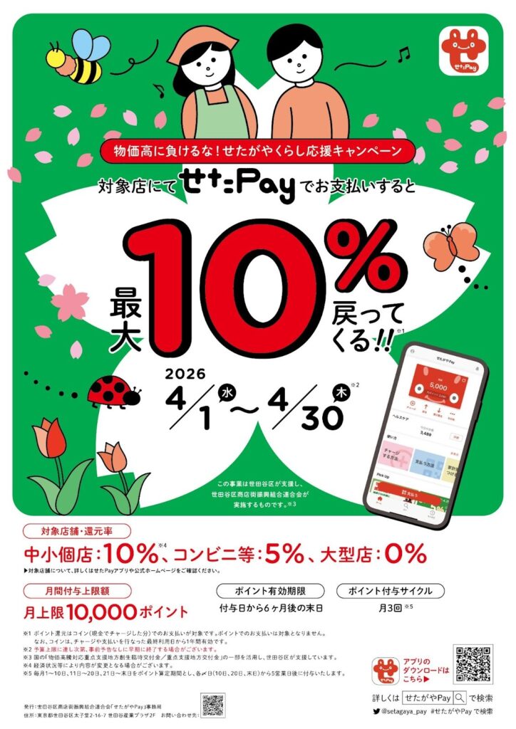 4/末まで!せたがやPay「物価高に負けるな!せたがやくらし応援キャンペーン(最大10%ポイント還元)