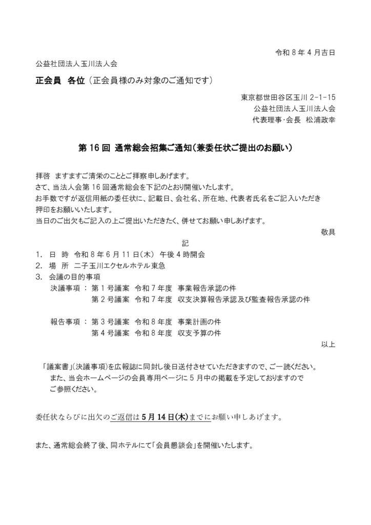 さて、当法人会第16回通常総会を下記のとおり開催いたします。