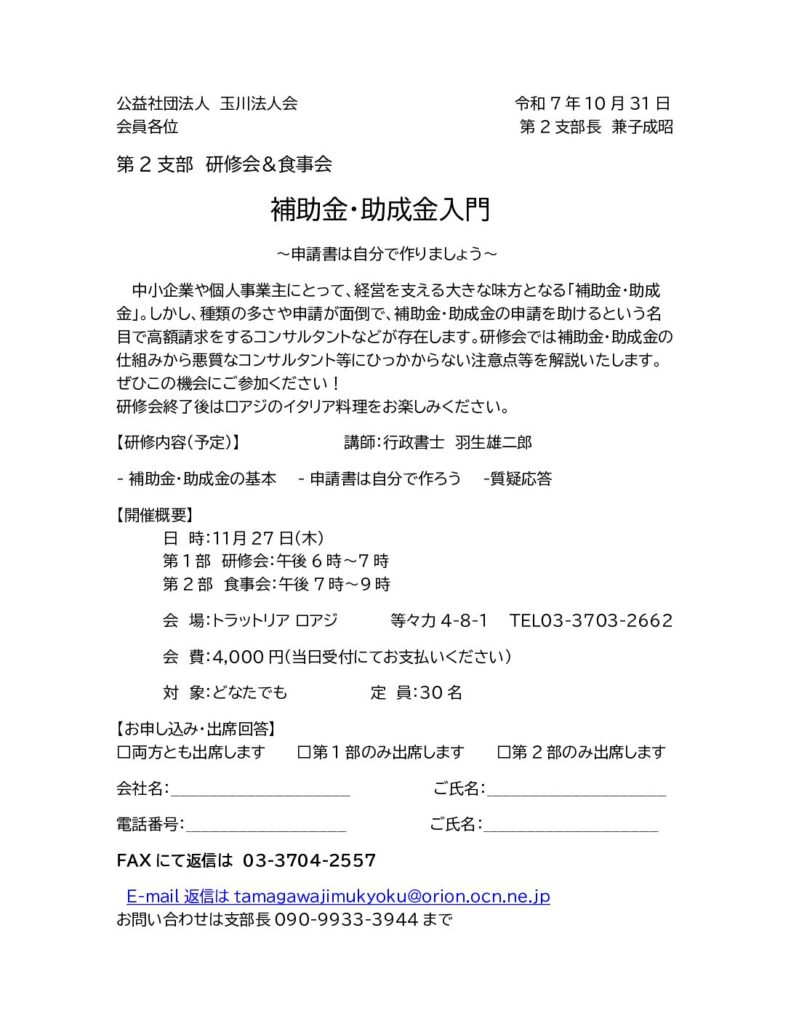第2支部 研修会&食事会 補助金・助成金入門 ~申請書は自分で作りましょう~