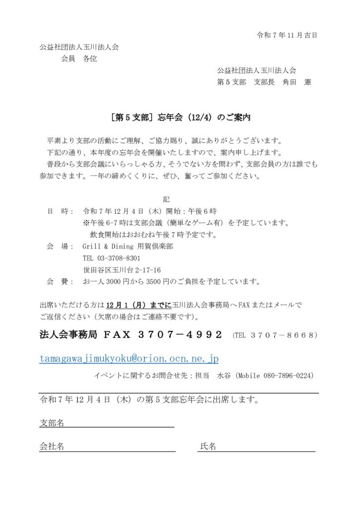 出席いただける方は12月1日(月)までに玉川法人会事務局へ下記フォームか、FAXまたはメールでご返信ください。(欠席される方は返信の必要はございません)