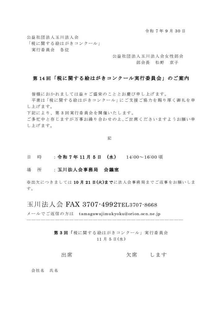 第14回「税に関する絵はがきコンクール実行委員会」のご案内