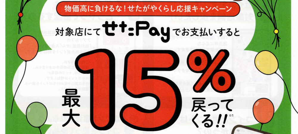 せたがやPay「物価高に負けるな!せたがやくらし応援キャンペーン(最大15%ポイント還元)